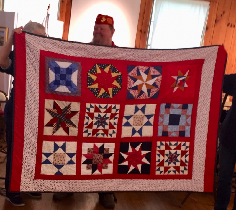 * Several times during the day-long event, time was taken to honor the service of veterans and present them with a quilt made by the Ashe County Piecemakers Quilt Guild. Look at the thumbnails to the right to see many of the beautiful quilts that were used to wrap the veterans in it's warming support for their service and sacrifice.