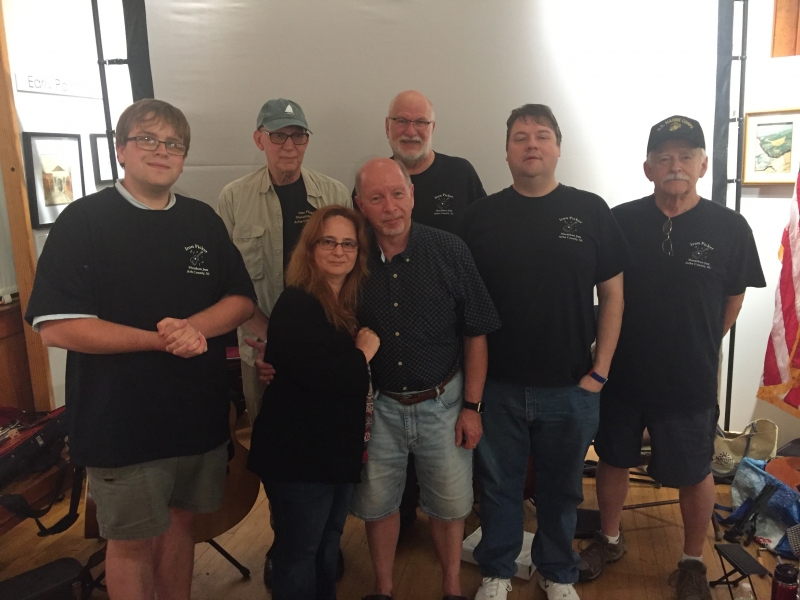* Each of the musicians who participated for all 12 hours of the jam - noon to midnight - were rewarded with the designation "Iron Picker." They include (pictured L to R, below right) Jonathan Phipps, Henry Doss, Catalina Burns, Henry Burns, Vance Archer, Chris Binkowski and Earl Inge.