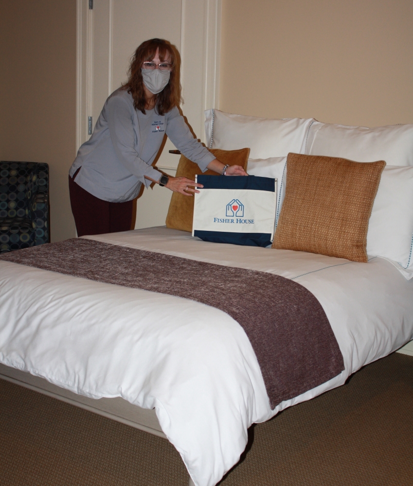 * Bottom photo, Camp LeJeune Fisher House member displaying a room that has been cleaned and prepared for a client using the COVID-19 funds that were part of the Marathon Jam program from our Chapter.